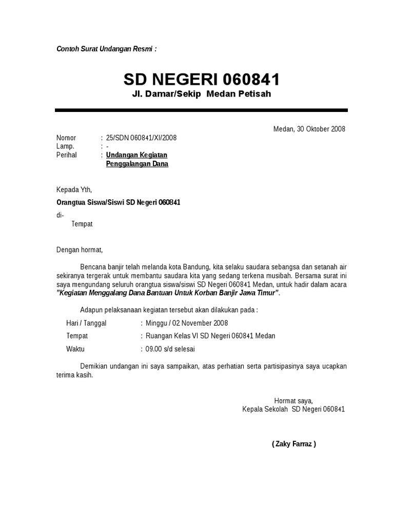 Word secara gratis dan mudah. Contoh surat undangan resmi bahasa inggris. Dengan berbagai contoh surat yang telah banyak akan membantu kamu untuk mengetahui contoh surat resmi yang baik dan benar. Untungnya kosngosan berikan contoh surat dinas sekolah format doc dibawah ini, yang bisa sobat edit dan. Surat diatas merupakan surat resmi dari sekolah menengah atas (sma) cendana yang berisi undangan kepada bapak/ibu/orang tua/wali siswa kelas x untuk menghadiri rapat bagi siswa baru dengan tujuan untuk mensosialisasikan kegiatan sekolah.