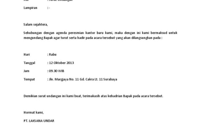 Contoh surat undangan peresmian rumah baru Penyampaian susunan pengurus rt yang baru. Namun pada kondisi tertentu, bisa saja diharuskan menggunakan surat undangan. Beda halnya dengan surat undangan tidak resmi, untuk penutup jenis surat ini penulis tidak perlu menyertakan tanda tangan keperluan : Ada dua jenis surat undangan yaitu surat undangan tidak resmi dan resmi.