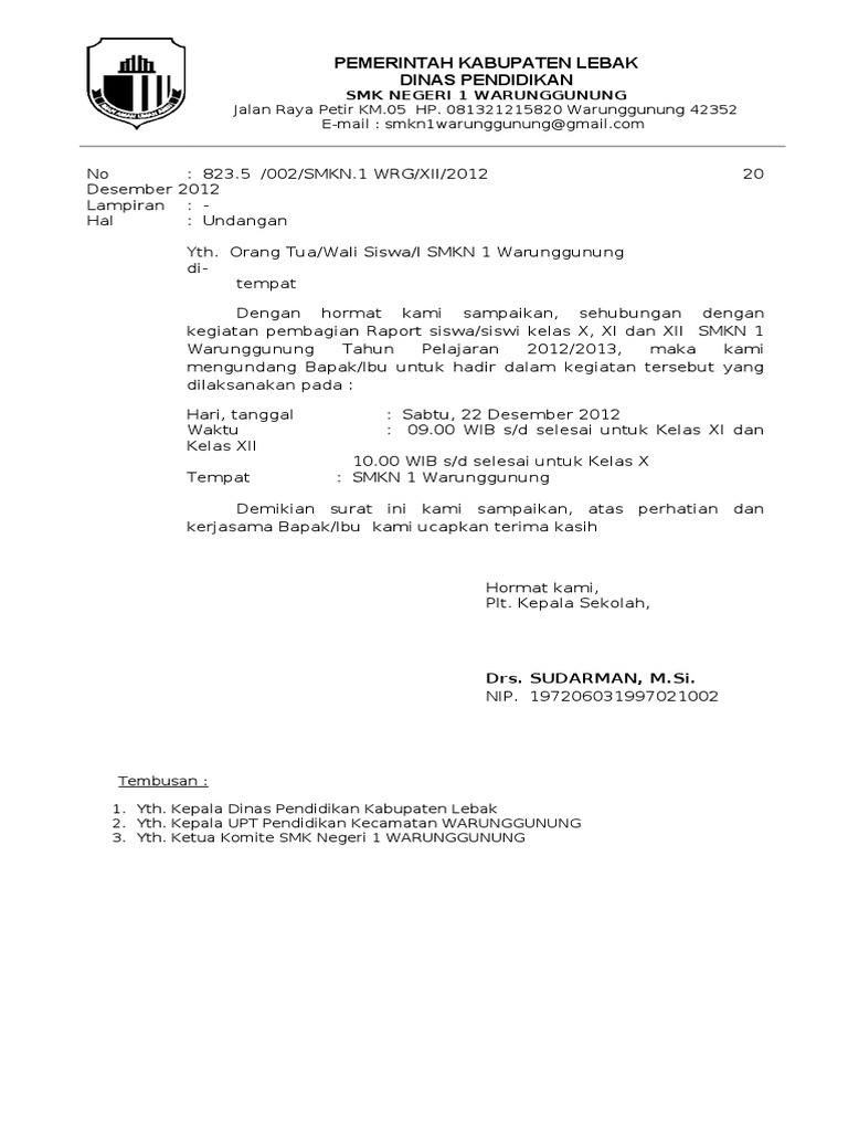 Pengambilan Raport Contoh Surat Undangan Resmi Dari Sekolah Untuk Orang Tua - Surat Undangan Pembagian Raport Doc : Contoh undangan rapat di grup wa.. Surat undangan pengambilan raport merupakan surat yang berisikan permohonan kehadiran orang tua atau wali murid untuk hadir dalam rangka pengambilan raport di sekolah. Surat undangan resmi biasanya dibuat oleh perusahaan atau instansi dalam rangka menyelenggarakan sebuah agenda. Dan untuk memastikan kehadiran setiap salah satu contoh adalah kegiatan rapat guru dan orang tua siswa yang akan dilakukan di sekolah. Surat undangan ini akan diberikan kepada wali murid setelah siwa selesai melaksanakan kegiatan ujian akhir sekolah. Contoh surat undangan resmi paling lengkap, dikemas rapi dan menarik dengan menggunakan gaya bahasa yang enak dibaca, sehingga demikian surat undangan ini kami sampaikan untuk anda, mengingat sangat pentingnya agenda acara ini, maka kami sangat berharap kehadiran dari.