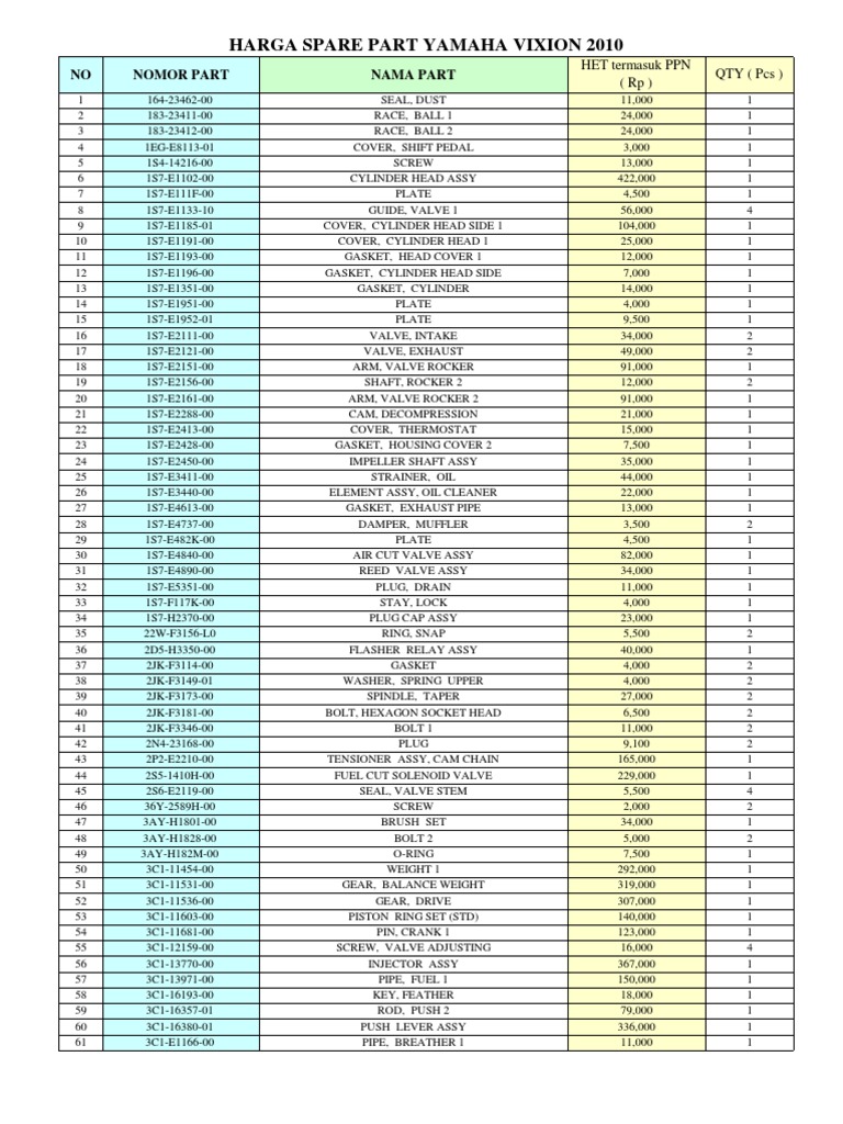 The yamaha outboards catalog features all of our latest outboard power innovations upgrade your power, trick out your rigging, find everyday maintenance items or shop our official yamaha apparel. Part katalog untuk produk yang dijual di indonesia oleh yamaha motor corporation yang dapat di lihat. Motorcyle oem spare parts for yamaha parts list partsmanual parts diagram. 1.unfortunately some parts listed may now no longer available from yamaha. 3.always confirm with the authorised yamaha dealer regarding their returns procedure as some parts, once ordered.